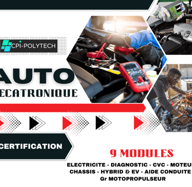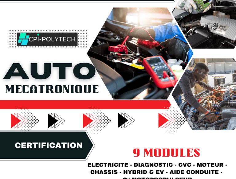 CPI POLYTECH offre des cours en mécanique et mécatronique automobile, avec certification internationale, accessible sur Play Store pour tous les passionnés et professionnels du secteur.